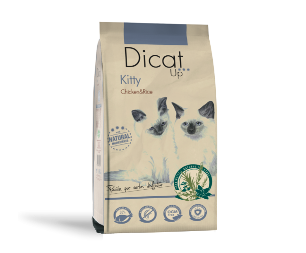 Dicat Up é um alimento completo para gatinhos nos primeiros meses de vida e gatas durante a gravidez com frango, arroz e plantas naturais.